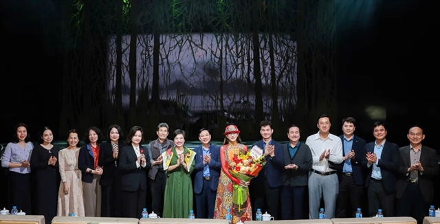 Officials from the Performing Arts Department and representatives of Hà Nội’s cultural authorities congratulate choreographer Yang Liping following a performance of The Peacock Hanoi 2026. — Photo courtesy of VietAr