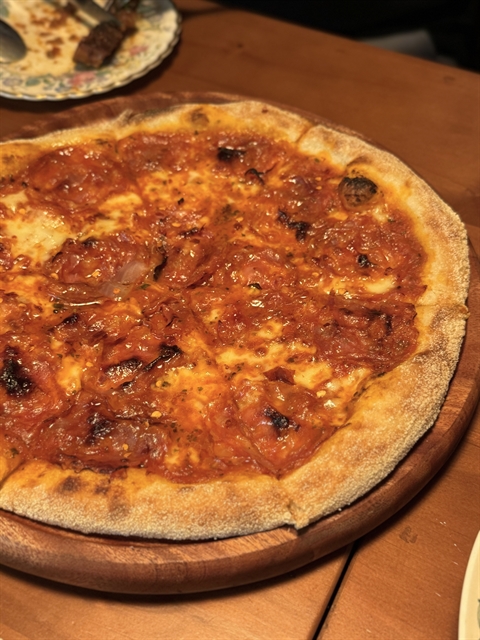 Last but certainly not least is the chorizo pizza (VNĐ290,000). This pizza is indulgence at its finest. What sets it apart is the rich, bold flavours that perfectly suit the Asian palate. The chorizo delivers a punch of savoury goodness, beautifully paired with the rich tomato sauce and melty mozzarella. The chilli adds just the right amount of heat, making each bite more exciting without overwhelming the taste buds.
