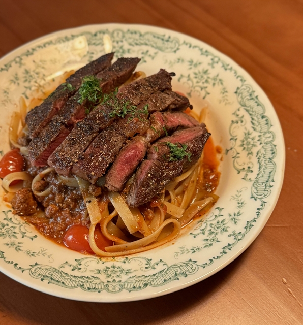 Next up is the ragu pasta (VNĐ450,000). This is the signature dish that will make you stop and pay attention. The ragu sauce is rich and saucy without being overwhelming, but the real highlight here is the steak. I highly recommend ordering it medium rare or medium to get the full effect of the juicy tenderness in each bite.