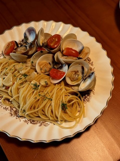 Spicy vongole pasta.