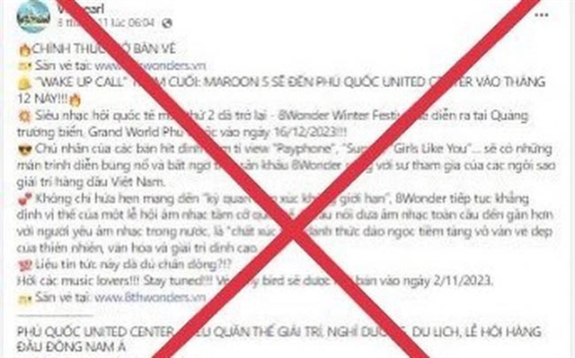 A fake fan page impersonating Vinpearl is used to sell event tickets on Facebook. — Photo: vtv.vn
