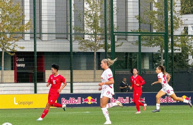 Vietnamese women football players (in red) in a training course at RB Leipzig last September.