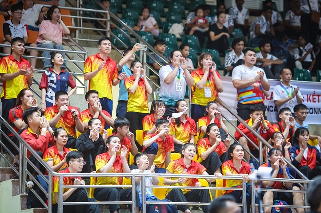 Vietnamese athletes and supporters at the Hà Tĩnh Province's gymnasium.