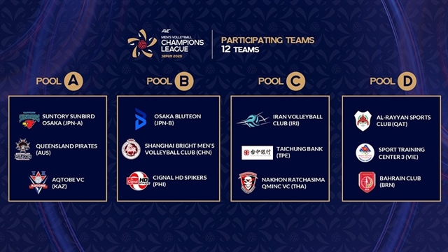 In the men’s tournament, Việt Nam's Sport Centre 3, which is the national team, will face Qatar’s Al-Rayyan Sports Club and a Bahraini team in Pool D.