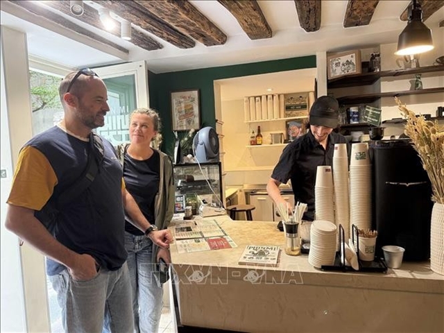 French customers visit “PHIN MI” to savour coffee rich in Vietnamese flavour. — VNA/VNS Photo