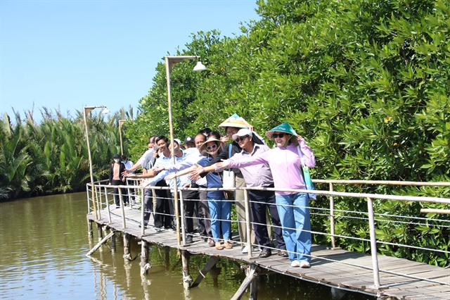 Tourists visit the mangrove forest at An Hoá Islet in Vĩnh Long Province. —VNA/VNS Photo