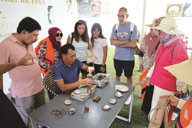 Tourists learn about pearl culturing in Vung Viêng. VNA/VNS Photo Đức Hiếu