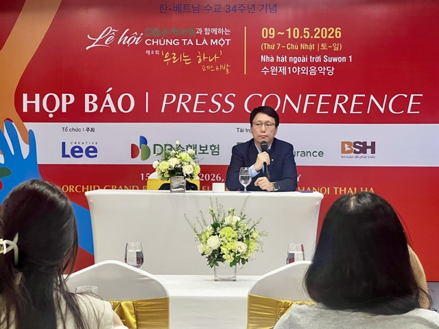 Park Hanwoong, representative of DB Insurance – co-organiser of the We Are Together Festival 2026 – speaks with media at a press conference in Hà Nội. — VNS Photo Thúy Hằng