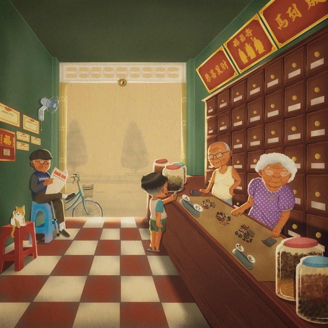 One of Dân's latest artworks, 'The Scent of Traditional Medicine', was inspired by his memories of traditional medicine shops in HCM City.