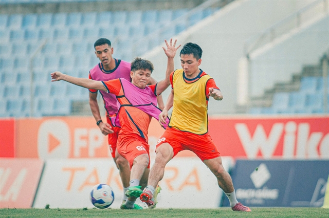 Players of SHB Đà Nẵng trian at Chi Lăng Stadium in preparation for the national football championship. — Photo courtesy of Thắng VIC