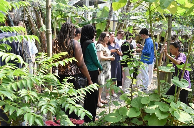 A group of tourists join a low-carbon tour at a garden of the Field Restaurant under management of EMIC Travel. Zerowaste, recycling and reuse practices and environment-friendly manners were included in the tour. Photo courtesy of EMIC Travel